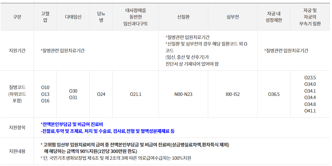 고위험 임산부의 의료비를 지원함으로서 경제적 부담을 덜어주고, 저출산 문제를 극복하기 위해 지원하는 사업입니다.